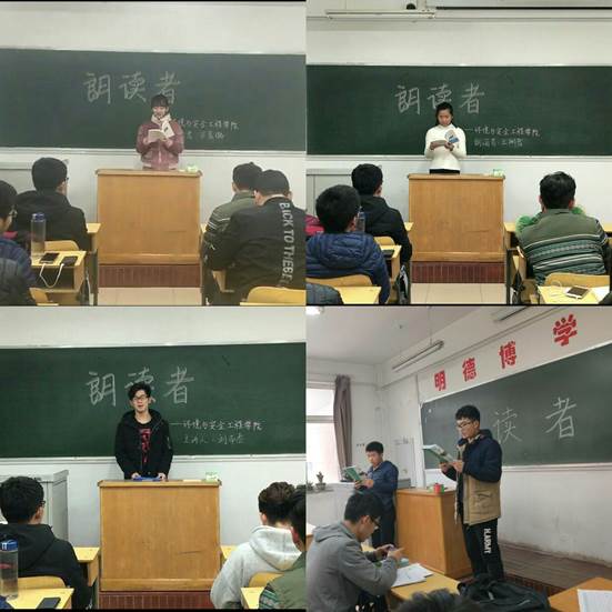 文化就隐藏在这一篇篇经典、一个个文字中,“朗读者”这个舞台,就是要化无声为有声,让每个人成为独一无二的朗读者。“朗读者”活动充分借鉴中央电视台文化情感类节目,每期由主持人引出本期的朗读主题后,几位朗读者各自利用十分钟左右时间,朗读自己准备的读本。这些读本,有些是同学们在图书馆内翻阅并挑选出来的现代散文、短篇小说,有些则是来自网络上的心仪文章。主持人会对本期主题、朗读者的读本内容、朗读者现场表现进行总结和集中点评,在场的老师们也会登台与同学们分享自己相关主题的经历。每期朗读活动完成后,我院新媒体成员负责录制成微信音频推送,方便所有爱好朗读的师生能随时聆听。