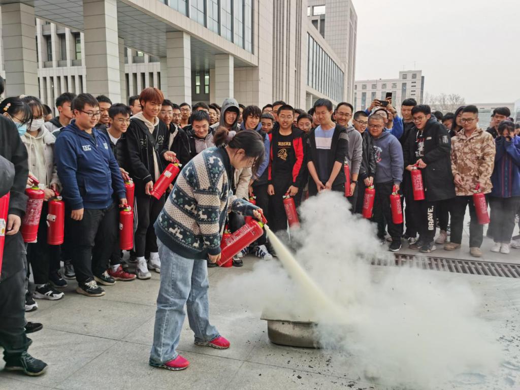下午16:00点随着警报声的响起,同学们在各负责人的指导下井然有序地撤出宿舍,清点人数后统一到达科学楼C座等待下一步指示。在化学工程与技术学院党委副书记李云的主持下,本次演习第二阶段拉开序幕。首先,陈天麟教官向同学们讲解了消防“三懂四会”技能,即:懂本单位或岗位火灾的危险性、懂预防和扑救火灾的基本方法、懂自救逃生的方法;会报火警、会使用灭火器材、会扑救初期火灾、会组织人员疏散。并从学生心态、学生思想、逃生方式等方面对本次演习中出现的问题进行点评与指正。最后,在教官的带领下,同学们亲自体验了使用灭火器的全过程。