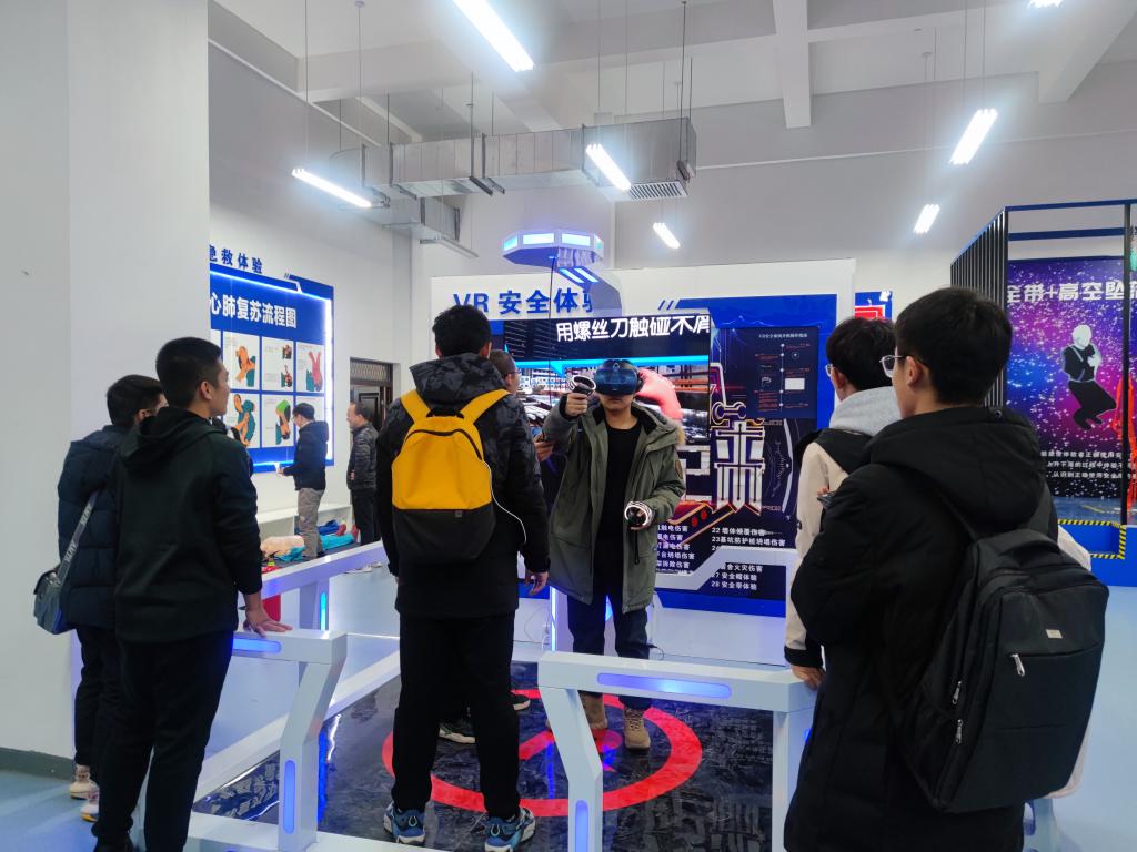 在现场志愿者的带领下,同学们学习了灭火器等器具和安全帽等劳保用品的正确使用(佩戴)方法、心肺复苏的要领和注意事项等内容,同时在志愿者的帮助下,同学们在VR虚拟现实中依次体验各类场景,从具体的事例中更加清晰地体验到了各种危险,这种直观的感受也让他们对安全防患有了更深的认识。