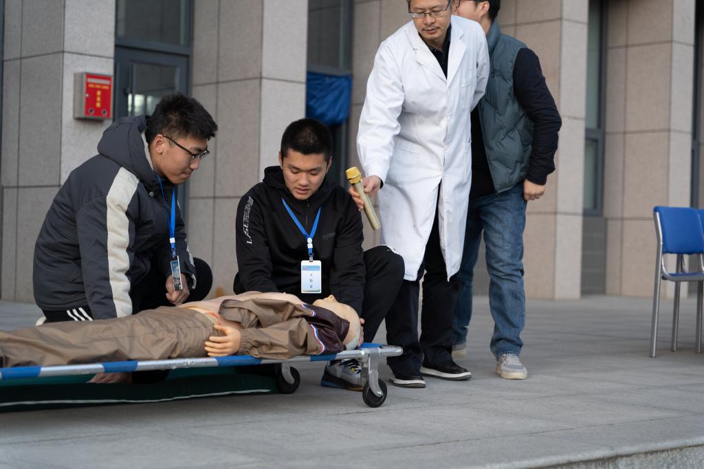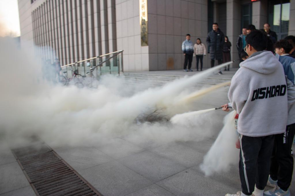 党委副书记张少明主持并发表了讲话,表扬了同学们积极参与本次消防演习的态度和同学们对安全意识的重视,并指出同学们要在日常生活中从主观上重视安全,从客观上杜绝安全事故的发生。讲话结束后,本次演习第二阶段拉开序幕。首先,由校医院副主任医师勾虎平详细讲解了心肺复苏动作要领和注意事项以及应对突发事件处理方法。并邀请学生亲自上台体验心肺复苏全过程。其次由校保卫处安全科科长史志强向同学们讲解了消防“三懂四会”技能,即:懂本单位或岗位火灾的危险性、懂预防和扑救火灾的基本方法、懂自救逃生的方法;会报火警、会使用灭火器材、会扑救初期火灾、会组织人员疏散。并从学生心态、学生思想、逃生方式等方面对本次演习中出现的问题进行点评与指正。最后,在史科长的带领下,同学们亲自体验了使用灭火器的全过程。