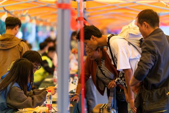 晨光熹微,志愿者们早晨六点半到达迎新点,积极热情地投入到迎新工作中。志愿者们以最饱满的热情和最真诚的态度迎接前来报到的学生和家长,悉心回答他们的问题,引导新生完成身份核验、登记信息、领取校园卡等流程,并帮助他们搬运行李,顺利完成入住,让新同学顺利、安心入学。郭士柱、张铁成、陈靓、赵雅欣等辅导员老师们有条不紊地收取新生材料、核实身份信息,为新生耐心解答并解决相关问题。