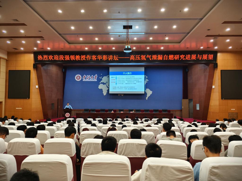 段强领副教授毕业于我院安全工程专业,后保送至中国科学技术大学深造。主要研究方向为氢能、锂电池等新能源开发利用中的火灾安全等。讲座中,段强领副教授详细的介绍了高压氢气泄漏自燃相关的进展,同时作为中北学子,以自身的成功事迹激发了大家对科研的热情,以及对氢能技术未来发展的期待。