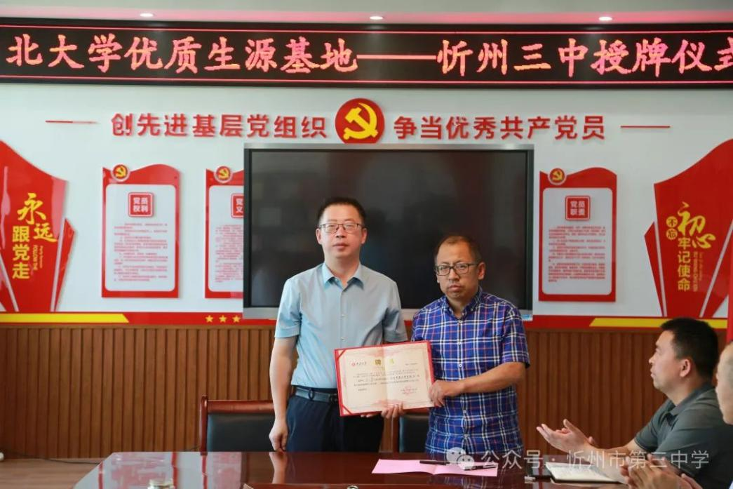 相关领导共赴忻州市第三中学校,签订“优秀生源基地”协议并授牌。