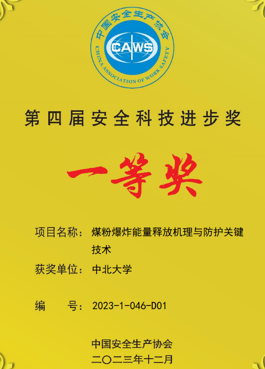 安全科学与工程学科曹卫国教授团队主持完成的“煤粉爆炸能量释放机理与防护关键技术”项目荣获第四届安全科技进步奖一等奖。该奖项是经国家科学技术奖励办公室批准设立的安全生产领域唯一全国性的安全科技奖项,标志着我校安全科学与工程学科建设的又一次突破。