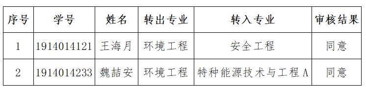 本科生转专业管理办法(试行)》(校教[2017]27号)和《关于组织开展2020年度本科生转专业工作的通知》(学籍[2020] 32号)文件要求,经学生个人申请,学院审核、面试(面试时间:2020年6月16日15:00,面试地点:科学楼C座614),现将拟同意转专业学生名单公示如下。